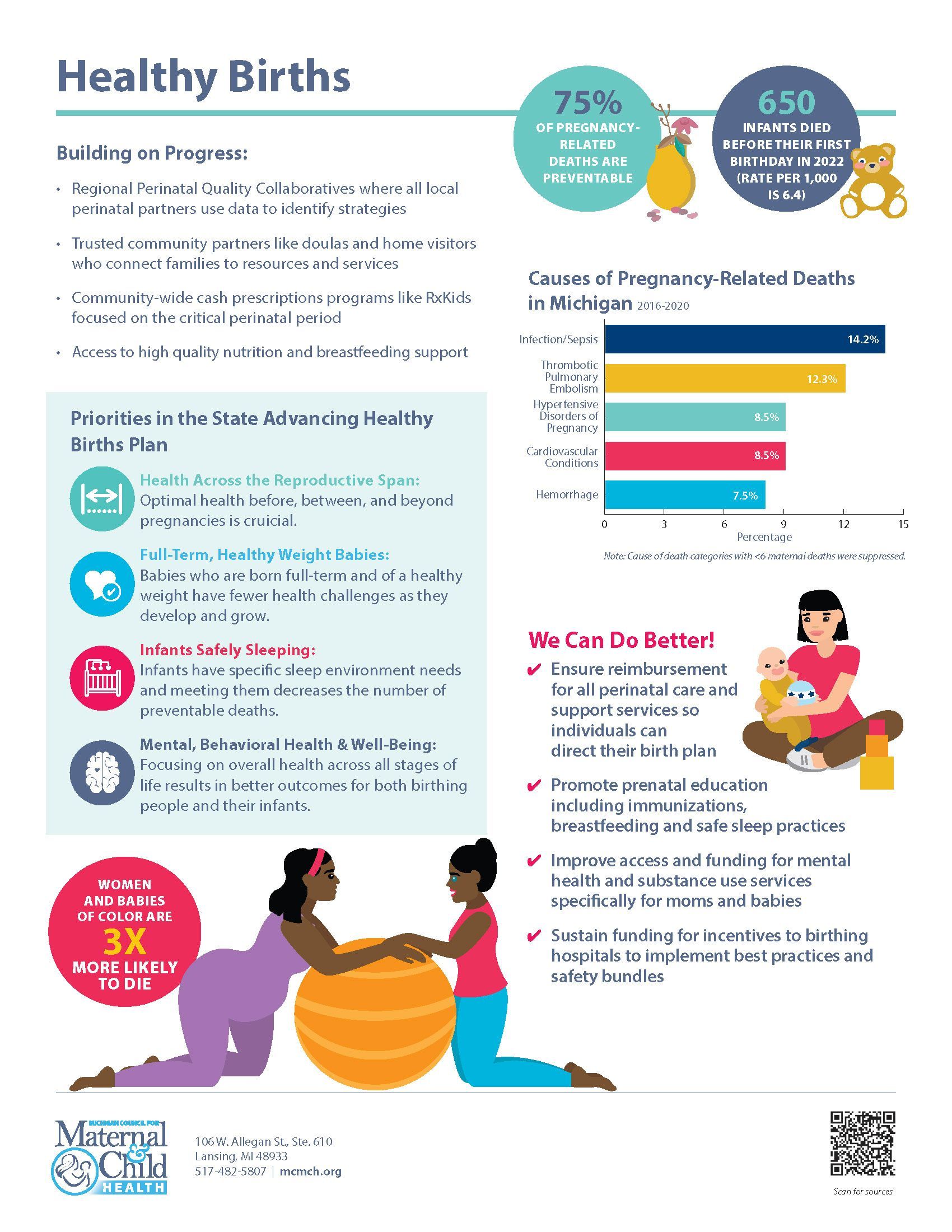 MCMCH has partnered with the Michigan Chapter of the American Academy of Pediatrics to produce several infographics to serve as a resource for policymakers and to provide background, data, and contact information to facilitate a dialogue with legislative candidates and maternal and child health advocates.